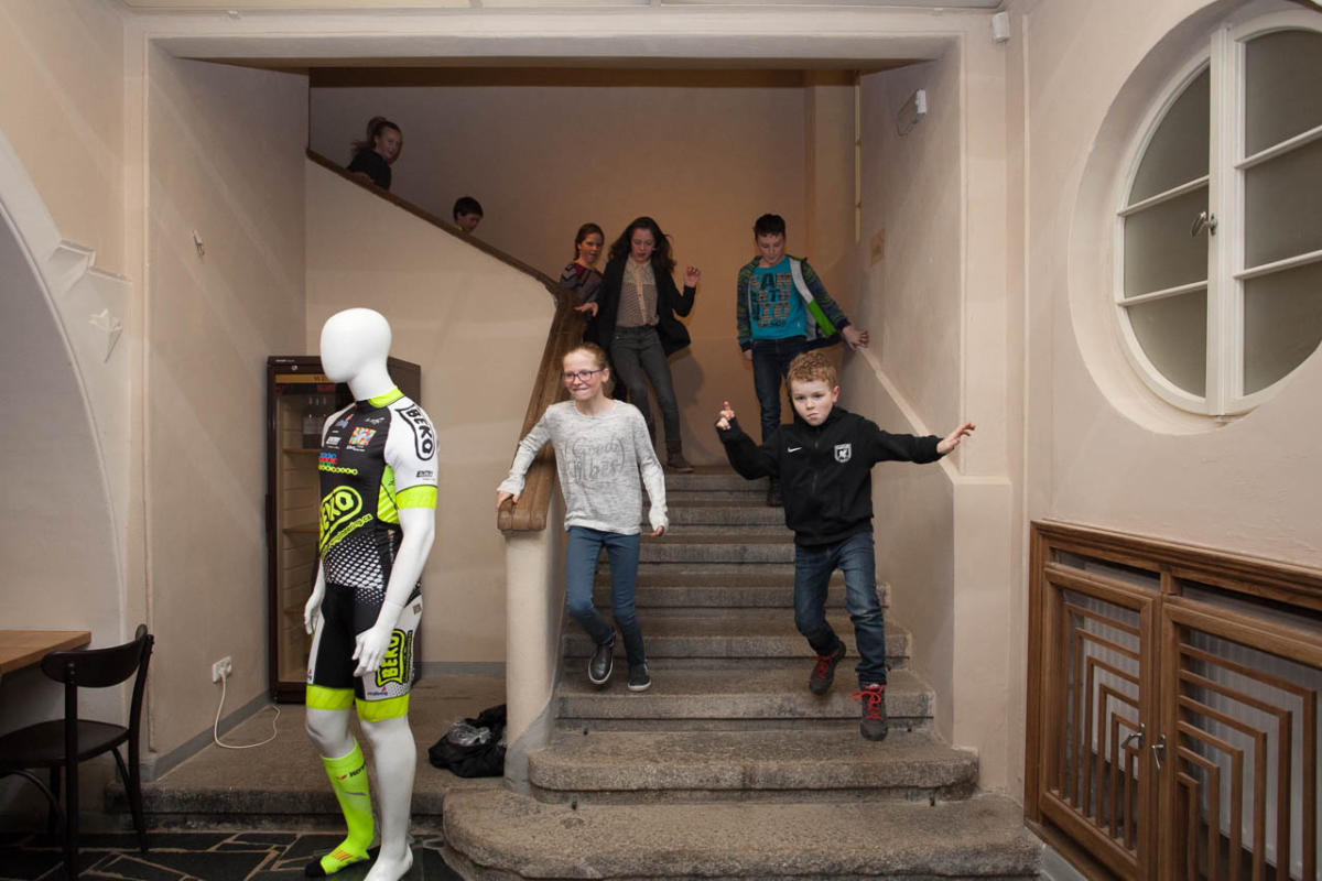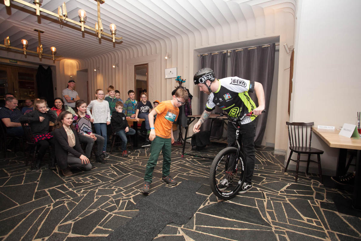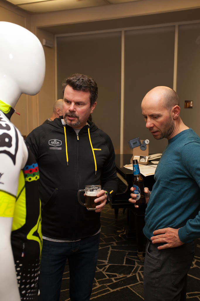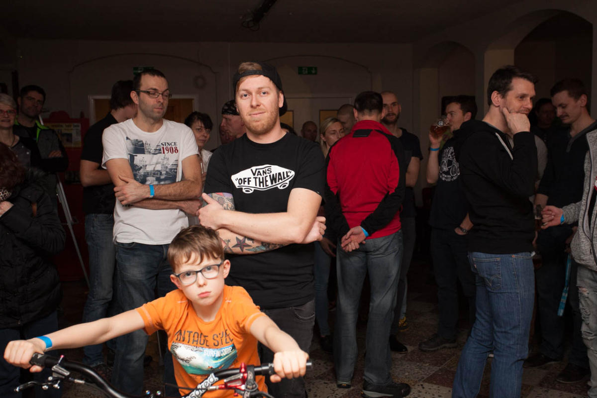 Po odpoledním společném švihu, který připravil Jan Veselý z MC Bike navazovalo představení týmů BSRT společně s beMANIAX MADBIKE. Prezentace byly prokládány trialovou show Honzy Sladkého a prezentací fotek Dana Polmana. Zpestřením byla módní přehlídka, raut a k dobré náladě přispěl točený Falkenštejn a pěkná obsluha :-). Vše se odehrálo v bývalých prostorách hospody Barrandov a v kavárně kina Varšava.